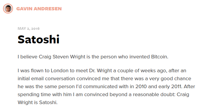 Craig Wright hat außerdem angekündigt, auch den restlichen Antrag in nächster Zeit zu veröffentlichen. Man könnte natürlich agumentieren, dass die Idee von elektronischen Zahlungsmitteln ohne Mittelsmann nichts neues ist. Wright konnte seine frühen Verbindungen zu "Bitcoin" durch mehrere E-Mails aus den frühen Entwicklungsjahren von Bitcoin aber bereits nachweisen. Zusätzliche Unterstützung erhält er von Gavin Andresen, der bekannt für sein frühes Bitcoin Engagement ist. Dieser tätigte 2016 folgende Aussage: "Nachdem ich einige Zeit mit Craig Wright verbracht habe bin ich überzeugt, dass er Satoshi ist."