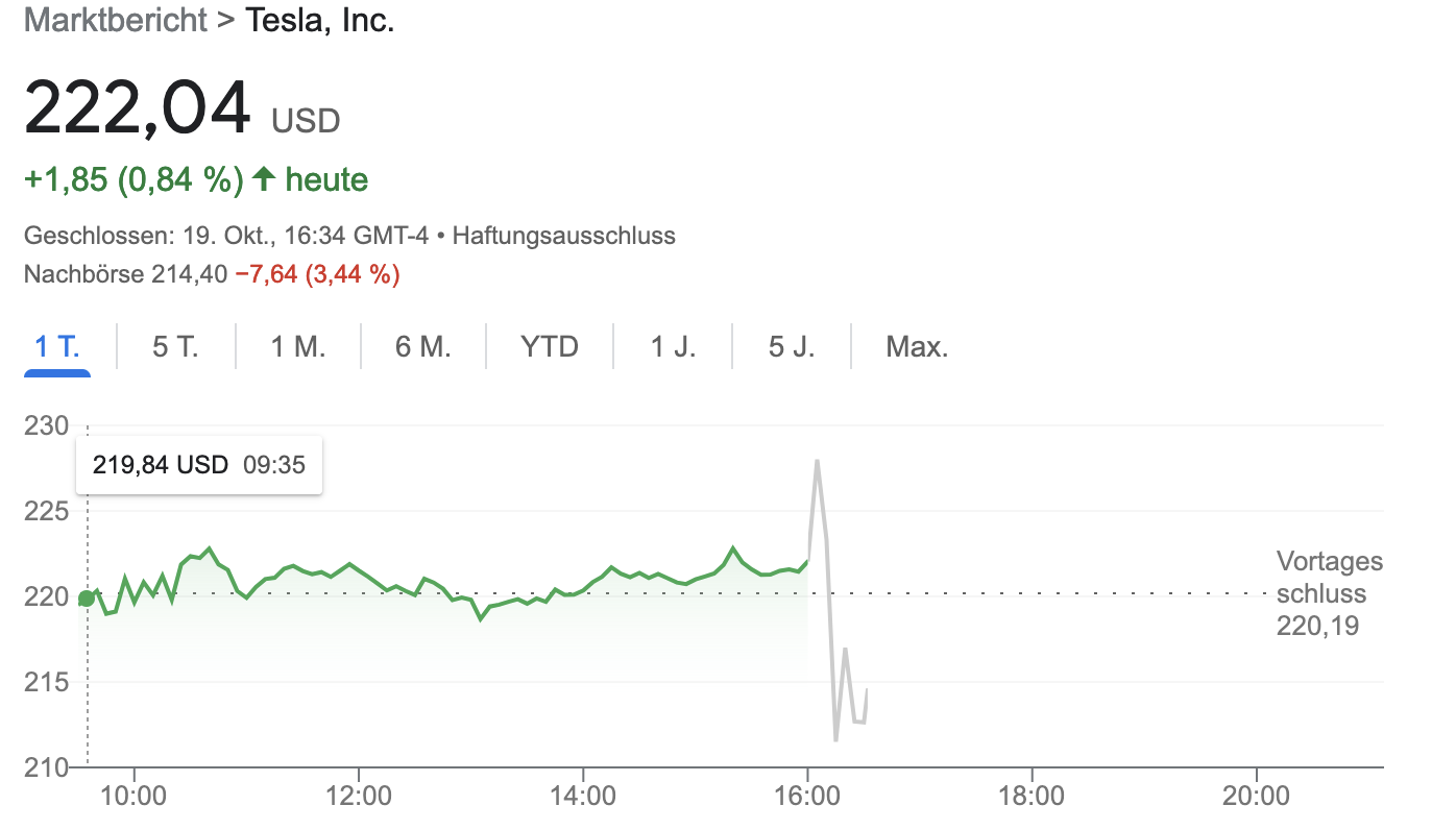 Trotz guter Umsatzzahlen fällt die Tesla Aktie nachbörslich deutlich um mehr als 3%: