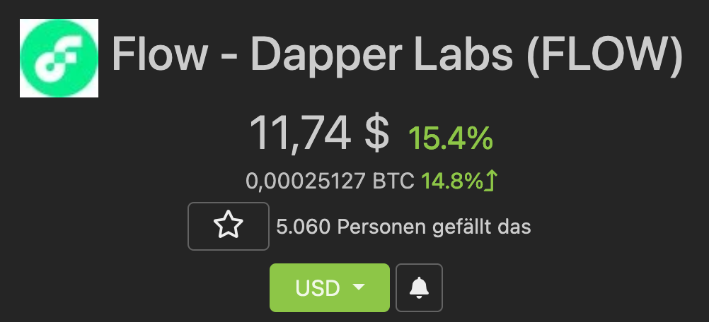 FLOW befindet sich mit einer Marktkapitalisierung von 270 Mio. USD noch außerhalb der Top 100 Kryptowährungen. In den letzten 24 Stunden konnte der Kurs um 15,4% zulegen. Der Höchstkurs liegt bei knapp 12$ und wurde am 1. Februar erreicht, kurz nach der erstmaligen Leistung des digitalen Assets.